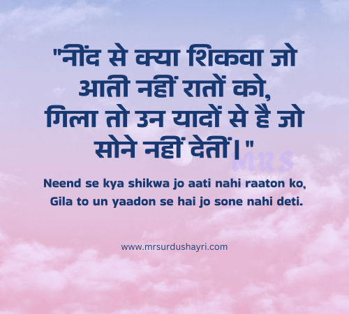 पंक्तियों में शायर ने जुदाई की रात और महबूब की यादों की गहराई को बेहद दर्दभरे अंदाज़ में पेश किया है। ये वो रात होती है जब सन्नाटा भी बोलने लगता है और हर तरफ सिर्फ यादों की परछाइयाँ घूमती रहती हैं। दिल बेचैन रहता है, आँखें नम हो जाती हैं, और महबूब की कमी हर लम्हा महसूस होती है।ऐसे में रात कटती नहीं, बस यादें और तन्हाई इंसान को अंदर से तोड़ देती हैं।